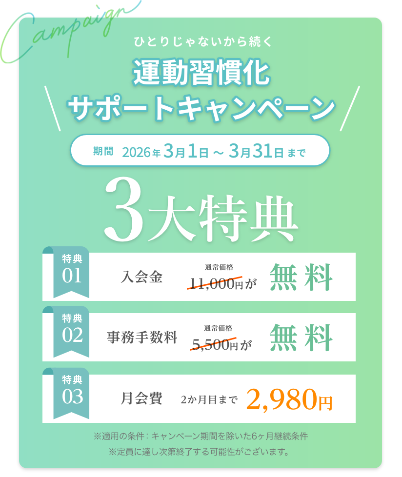フィットネスクラブと同等の価格で、1人1人に丁寧な個別指導を提供しています。その日のメニューだけでなく、次のご来店時に取り組む運動が明確になるため、運動を続けやすくなります。